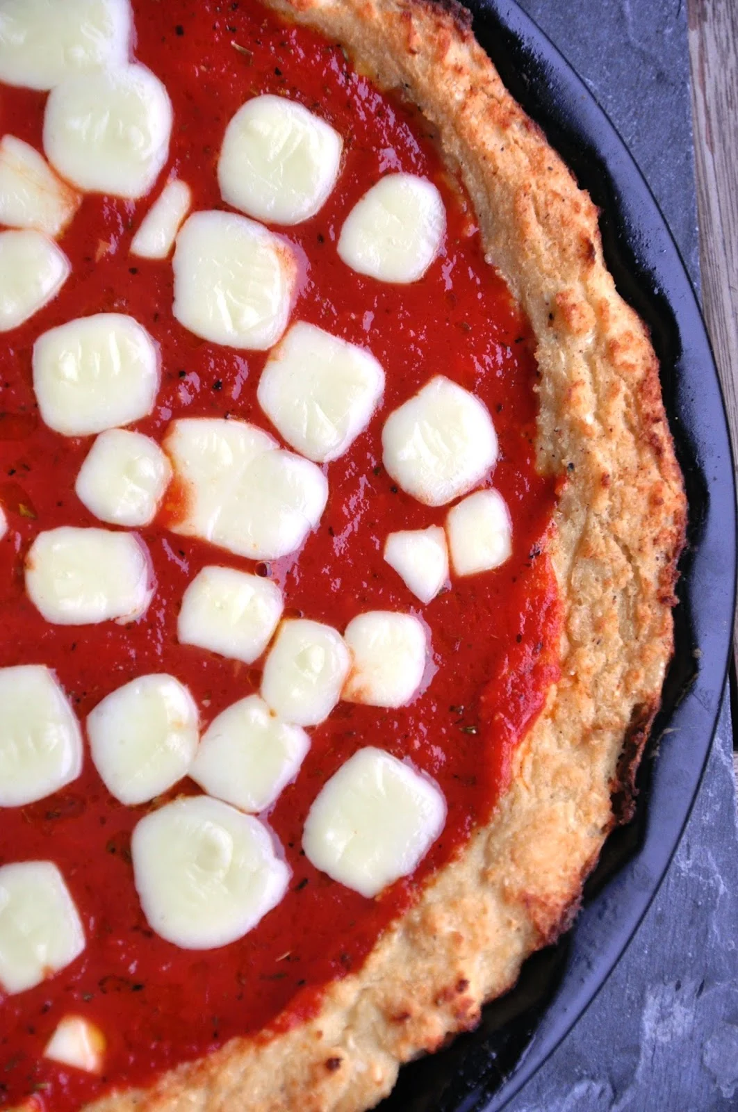 W miseczce wymieszaj pasatę ze składnikami sosu. Wylej na podpieczony kalafiorowy spód. Rozłóż kostki mozzarelli i zapiekaj jeszcze 10 minut.